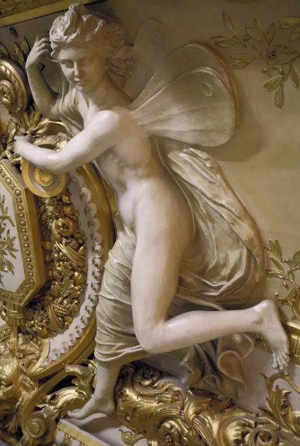 The images speak for themselves here and refer to two other works of art. The first one is closely related to our ceiling as the sketch of The Glorification of Music is exhibited at the Musée d’Orsay without the colors and details that make up the charm of the painting. The second one refers to an outstanding exhibition at the Cité de la Musique about Marc Chagall and the triumph of music. The exhibition features a model of Chagall's painting displayed on the Opéra Garnier's ceiling (1964) with a soundtrack consisting of famous titles from the operatic repertoire that starts each time a magnifier passes over the name of a composer that refers to a title (in collaboration with Google).