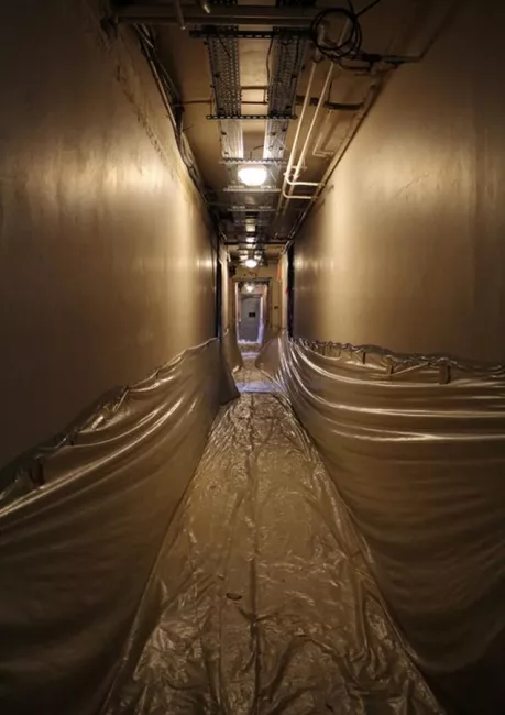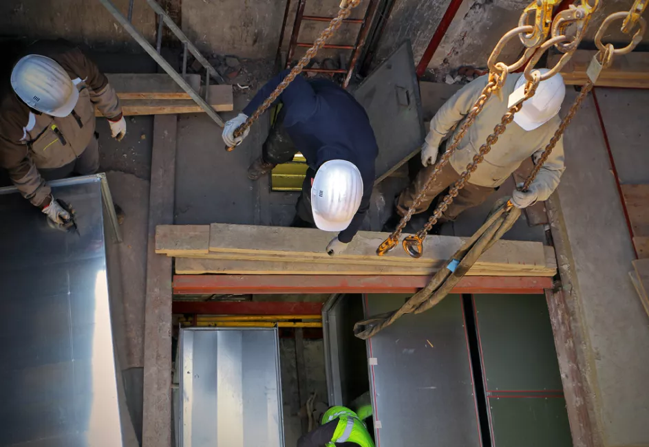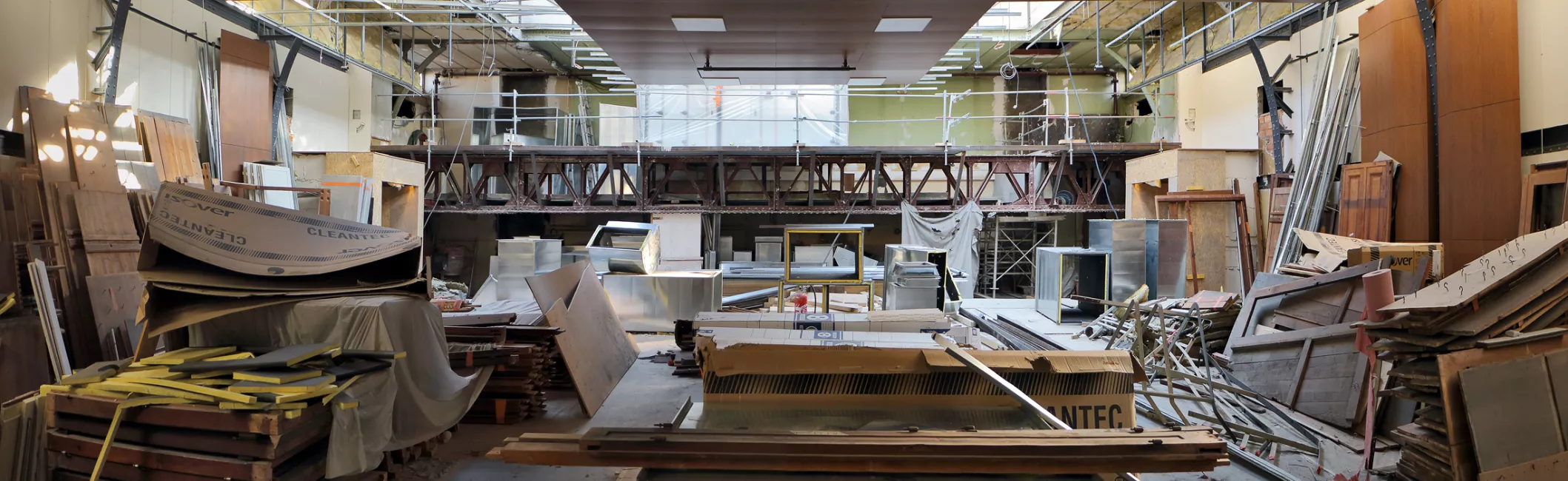 In the lobby, workers wearing hard hats were imprisoning Manon and Carmen under the pipes just removed from the auditorium. This gave us a pretty good idea of the advancement of the work. So far, the deadlines were met. And a day will come when Carmen and Manon are released.