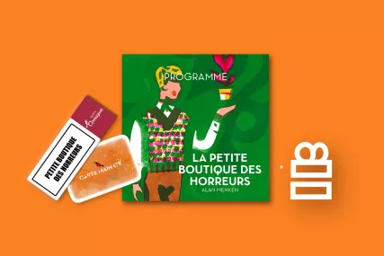 What’s in the box : Ticket(s) for La Petite boutique des horreurs | a program | a Carte Mainate | a surprise