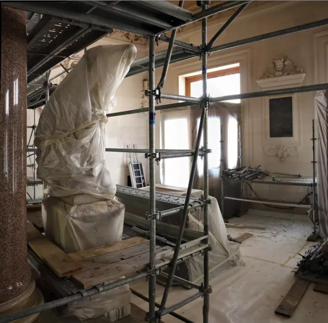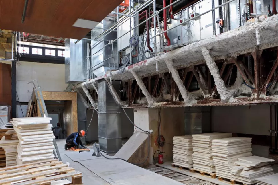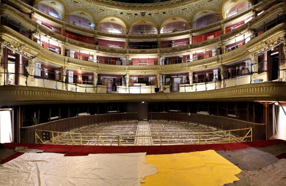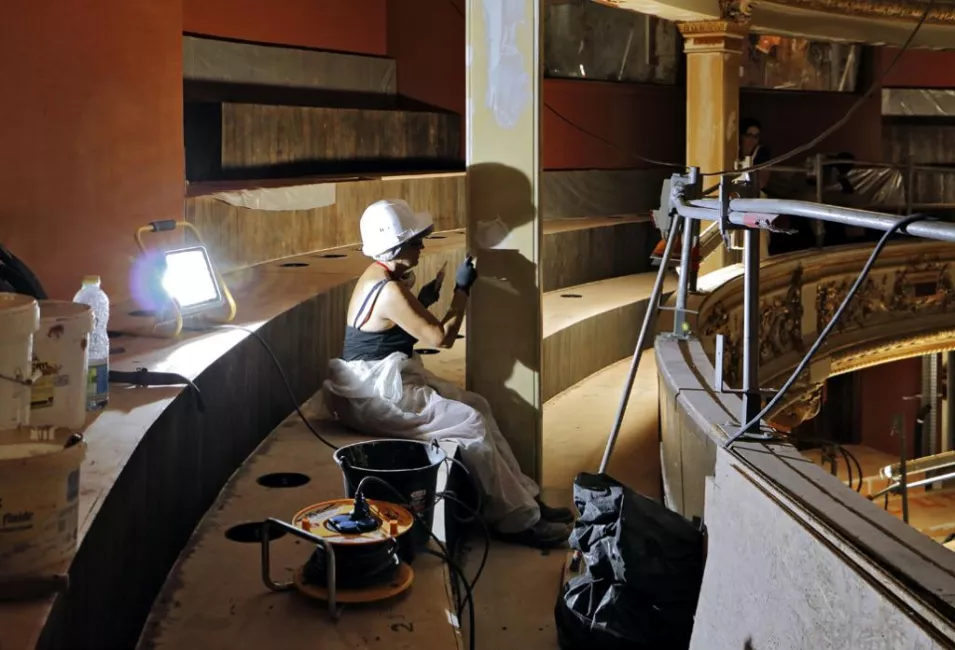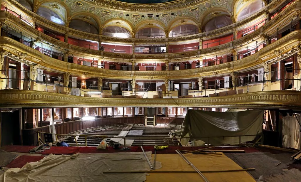 A bas-relief on a pristine wall of the lobby that used to go unnoticed and which is now manifest for all to see, new colors, particularly the gildings, brand new machines under the roofing that will soon cool the auditorium, workers who devote themselves to the finishing off… a feeling of renewal. The same feeling left by our childhood new notebooks and pencil wallets just bought from the store for each new school year and the promise of new classmates and teachers transformed these daily objects into exploration tools. This is not to say that the renovation work is drawing to a close but it’s evident that completion is approaching: a trim and better ventilated auditorium, new public spaces with better comfort for all our audiences, nicer and more spacious rooms for the artistic and technical teams.