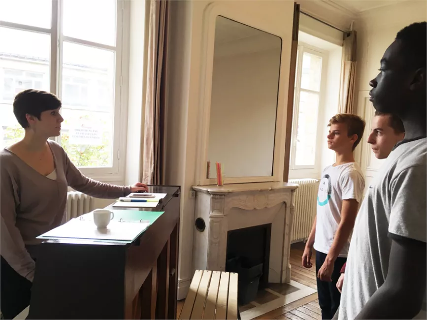 “My task is to give the young vocalists of the Maîtrise the tools which will enable them to better know, understand, handle and control their voices. I ask my pupils to work on their bodies and on movement in order to realize the importance of all the parts of one’s body during the emission of sound. Then this sound is trained through vocalises and adapted exercises once the singer’s bellows is set up. I very often start with a vocalise with the mouth shut so that pupils can feel the high resonance required for a sung and projected voice. Then a vocalise on an ascending and descending fifth that blends percussive consonants and singing vowels to awaken both support and music very gently! The course is highly interactive and ‘upon request’: each pupil comes with her/his questions, facilities and difficulties, my aim is for her/him to hold all the cards so as to sing healthily and with pleasure!”