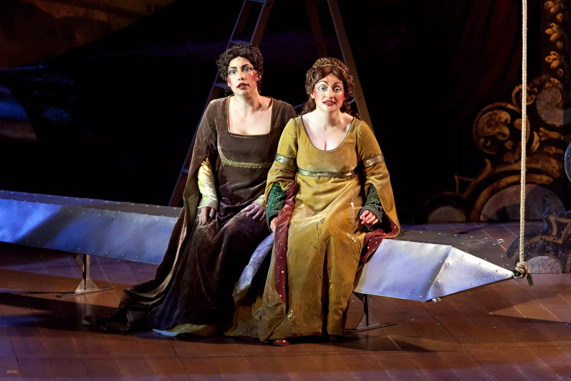 In Messina in the 16th century the Sicilians celebrate victory over the Moors by the troops of valiant general Don Pedro, whom governor Léonato is about to receive. His daughter Héro awaits the return of her beloved Claudio with impatience, but her niece Béatrice taunts military valor, aiming her sarcastic remarks at another officer, Bénédict. The reunion is as tender between the engaged couple as it is stormy between Béatrice and Bénédict, who trade insults and mockery with a strange pleasure. When Claudio learns of his imminent nuptials from the general, he is as delighted as Bénédict is horrified. Don Pedro and Claudio conspire to lead the two enemies to also marry in accordance with the governor’s secret wish. Somarone, the music teacher, conducts his choir and orchestra for the evening festivity. His so-called masterpiece is given a rough handling by the choristers and rehearsed before a general not so keen on music. When the musicians have left, the general and Claudio start a conversation about Béatrice with the purpose of making Bénédict believe that she is madly in love with him. The young man eventually recognizes Béatrice’s qualities and decides to give up his pride and succumb to love. On her part, Héro had a similar discussion with her attendant Ursule and Béatrice overheard them. The night is falling with its share of promises.