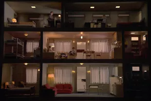Hébergés quelques semaines par la famille du deuxième étage, chacun retrouve sa place. La nuit, l’homme et la femme sont à nouveau réunis, sur un divan au salon, tandis que la jeune fille partage la chambre des enfants.