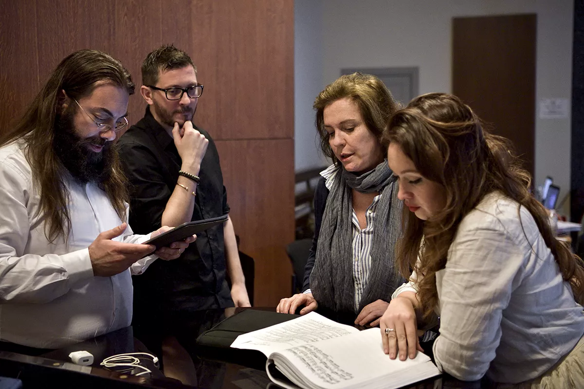C’est l’histoire du passé qui rattrape le présent, de Rodolphe qui subit les erreurs fatales de son père Luddorf, et d’un amour impossible à la Roméo et Juliette. Pendant les répétitions, les sourires, les rires et les visages parfois graves des solistes nous promettent déjà un opéra intense et fort en émotions. Michael Spyres incarne Rodolphe, le fils hanté par le meurtre commis par son père, Vannina Santoni le rôle d’Agnès, amoureuse de Rodolphe et soumise malgré elle au joug de la Nonne, un fantôme parmi les vivants, qui est joué par Marion Lebègue.