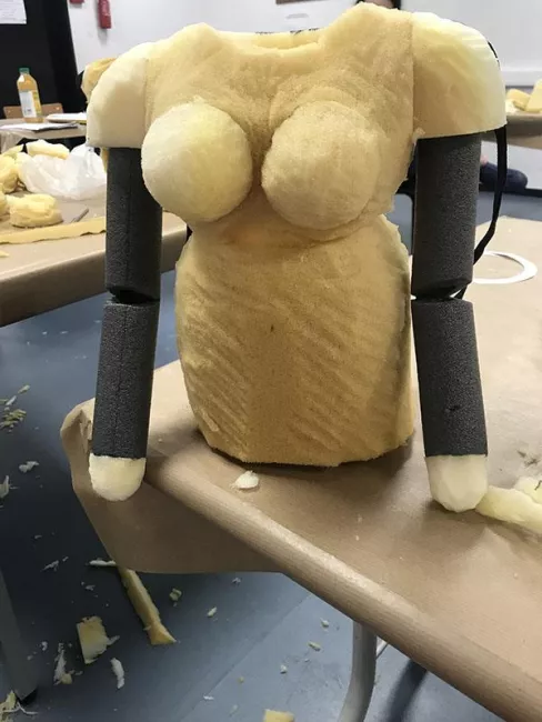 Par un travail de sculpture, maquillage et pose de plumes, les participants de l’atelier marionnette donnent peu à peu forme aux personnages de l’opéra.