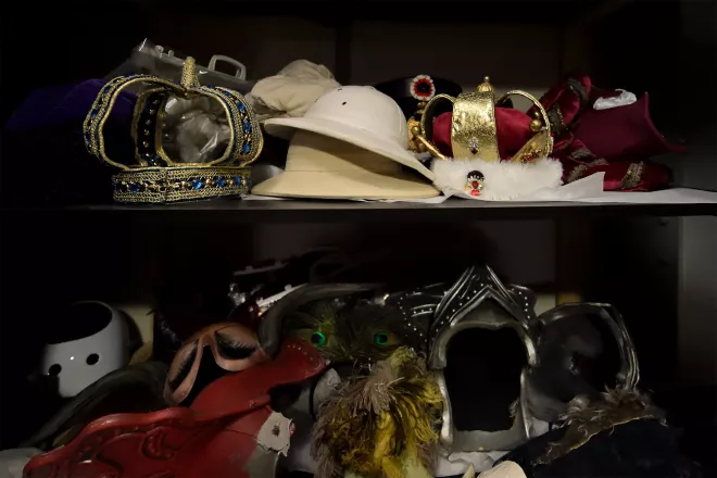 Quelques mètres plus loin, au Central Costumes, on se glisse avec difficultés entre les machines à coudre, les tables de travail et les mannequins couverts de pièces de costumes qui peu à peu prennent forme. Ici, on essaye une robe féérique ; là on coupe déjà dans la toile le patron de tailleurs hommes, qui serviront pour une prochaine production ; plus loin, on élabore patiemment des formes complexes qui feront naître sous nos yeux émerveillés un monstre que sa carapace rend difforme, des sombres silhouettes de fées ; à côté, à l’atelier accessoires, on cloue, on colle, on peint, on porte la dernière touche à un trône majestueux ou à un banquet plantureux.