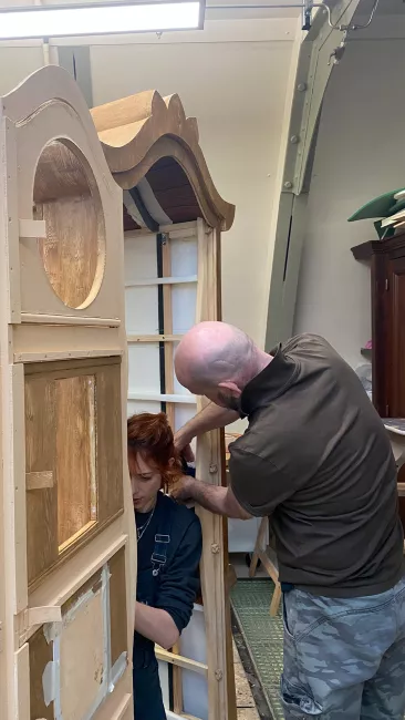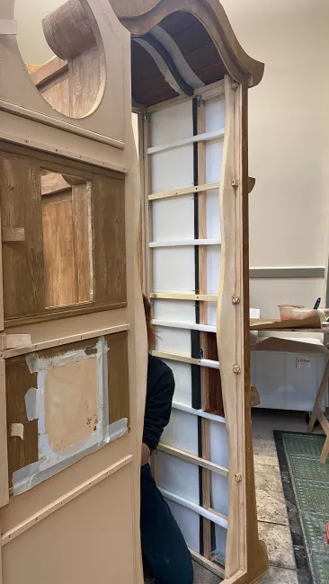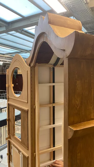 Les horloges devaient être suffisamment grandes, solides et résistantes pour que les chanteurs puissent entrer dedans – et en même temps pas trop lourdes. Chanter, se déplacer et monter des marches avec demande de l’entraînement et un véritable effort physique ! Une fois terminées, les horloges ont été confiées aux équipes en charge de l’habillage, qui, si besoin, feront des retouches entre chaque représentation.