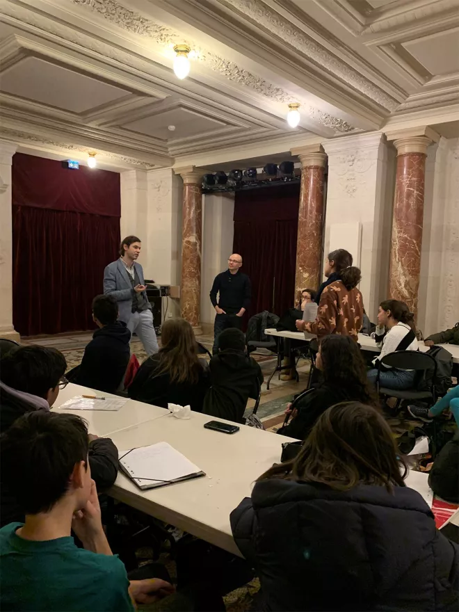 Ils sont ensuite venus passer une journée à l’Opéra Comique pour une présentation de maquettes de l’œuvre, une visite tu théâtre, un accès à une répétition scénique-orchestre ainsi qu’une rencontre avec les équipes artistiques, dans le but de nourrir une création d’une série de podcasts autour de cette œuvre.