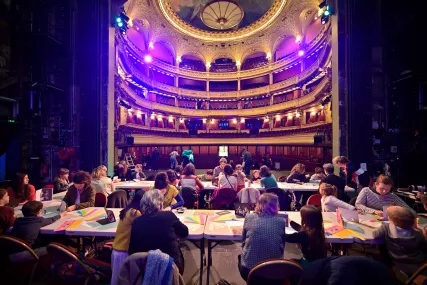 L’artiste Mélanie Apach vous accueille, directement sur la scène de la salle Favart, pour un atelier créatif et ludique qui donnera vie à vos histoires et éveillera l’imaginaire des petits comme des grands.