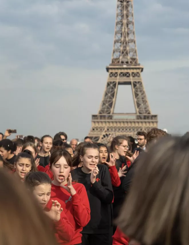 Intervention surprise de la Maîtrise Populaire au Trocadéro ! Photographies : ©ALGER Hervé, CROISARD Quentin