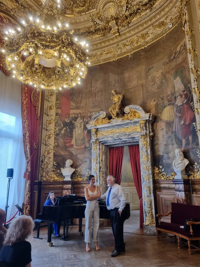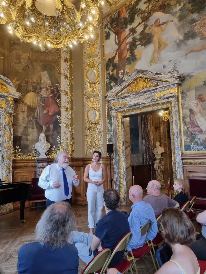 Ce moment de partage a été mené par le baryton Jean-Philippe Lafont, une référence majeure du chant lyrique français et particulièrement dans le style opéra-comique, en présence de la mezzo-soprano Marion Vergez-Pascal et de la pianiste Katia Weimann.