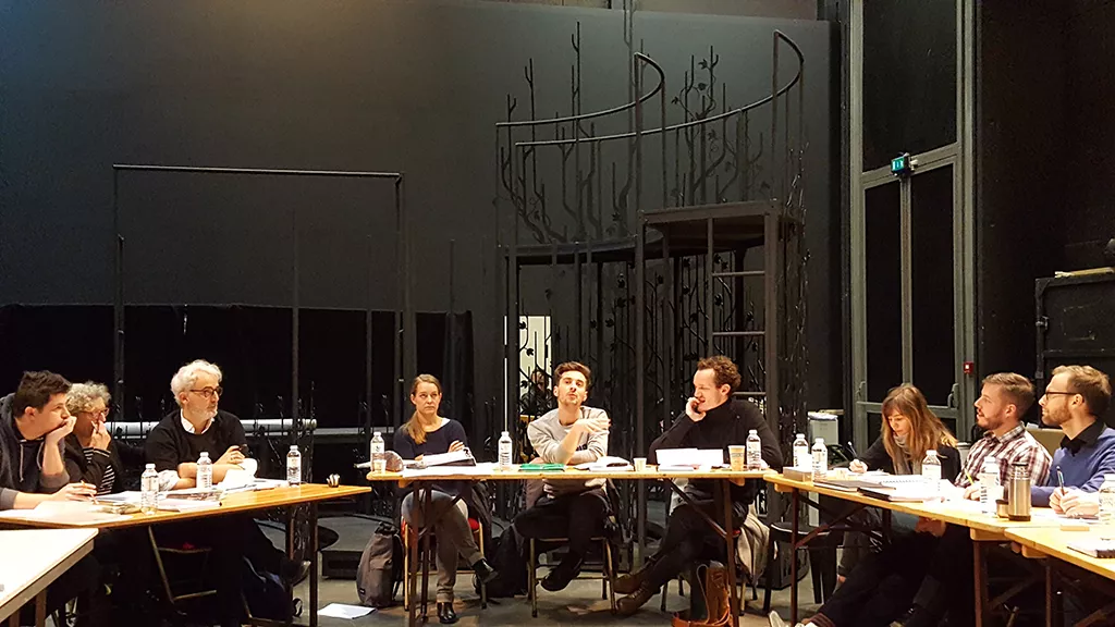 Après un tour de table pour présenter les derniers arrivants, Thomas Jolly et Alexandre Dain ont exposé aux interprètes le planning de la semaine (répétitions par petit groupes selon les scènes à travailler, lectures le matin puis chant et mise en scène l’après-midi), auquel il faudra bien sûr ajouter des séances d’essayages de costumes ou de perruques.