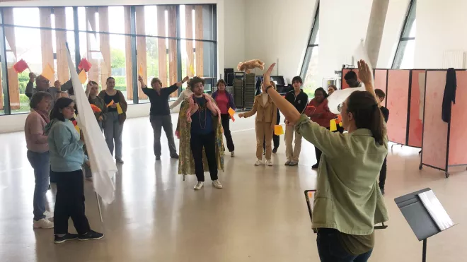 Atelier de Théâtre et chant choral : 5 jours de répétition consacrés à la création de la scène du choeur des Voix de la Ville. La pianiste et cheffe de chant Katia Weimann rejoint l’équipe artistique.