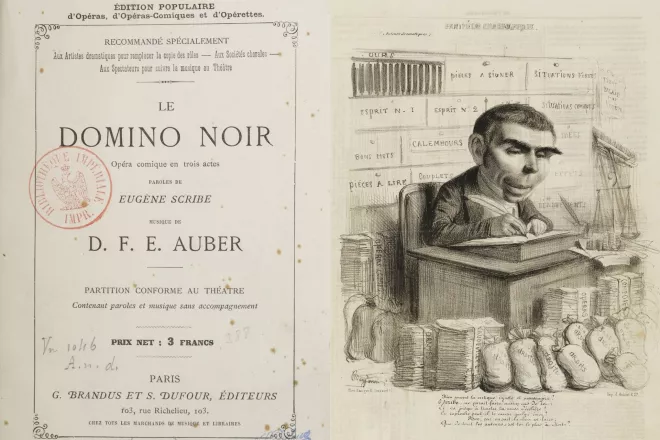 Auber s’installe à Paris à l’âge de 22 ans. La capitale est alors un haut-lieu de la création artistique européenne et fait figure d’incontournable pour les compositeurs de l’époque. L'année 1825 marque un tournant dans la carrière du compositeur. De sa première collaboration avec le librettiste Eugène Scribe nait Le Maçon, qui rencontre un grand succès en France et à l’étranger. Dès lors, le compositeur enchaîne les succès avec Fra Diavolo, Le Cheval de bronze, Le Domino noir. La collaboration entre les deux hommes contribue à créer un style qu’on nomme le Grand Opéra à la française. Ensemble, ils composent plus de 37 opéras.