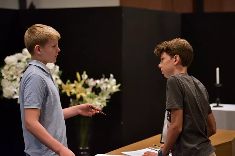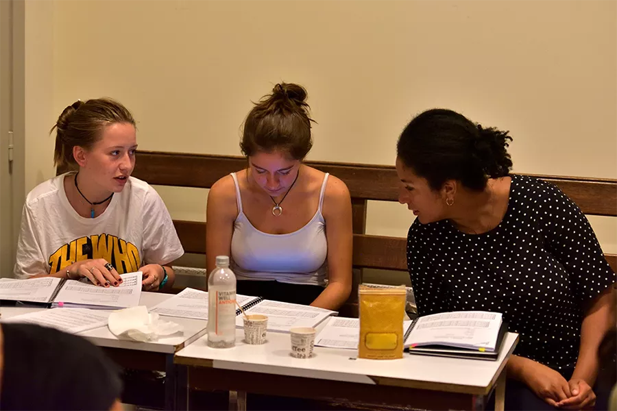 Sans doute cela faisait-il longtemps qu’il n’y avait eu autant de jeunes adolescents rassemblés au Petit Théâtre pour un opéra. Miranda, voilà la responsable, le beau prétexte à cette présence donnant à l’espace enceint de murs noirs l’éclat de la juvénile insouciance. Ils s’appellent Margot, Rosalie et Marius et ne sont autres que des élèves de la Maîtrise Populaire de l’Opéra Comique, qui voit déjà sa jeune garde s’élever avec flegme au rang de chanteurs d’opéra. Ils l’ont peut-être déjà oublié, le temps de leurs premières gammes, alors qu’ils doivent à présent chanter aux côtés de chanteurs à la carrière longue et solide. « Je ne me suis pas chauffé la voix… », peut-on entendre de leurs bouches. Bon signe, les réflexes se sont installés. Aksel Ryvkkin, l’enfant-star du lyrique, un peu plus aguerri, ajoute sa voix à la leur. Le regard des grands, à commencer par celui de Katie Mitchell, la metteuse en scène, semble baigné de considération et de bienveillance. Mais ils vont devoir apprendre vite : les gestes, les mouvements, les regards, tout sera réglé avec une indiscutable précision. L’adolescent doit encore se plier aux règles. Katie Mitchell et Raphaël Pichon, le chef d’orchestre, sont ici et maintenant les maîtres du temps.