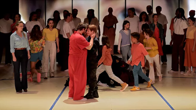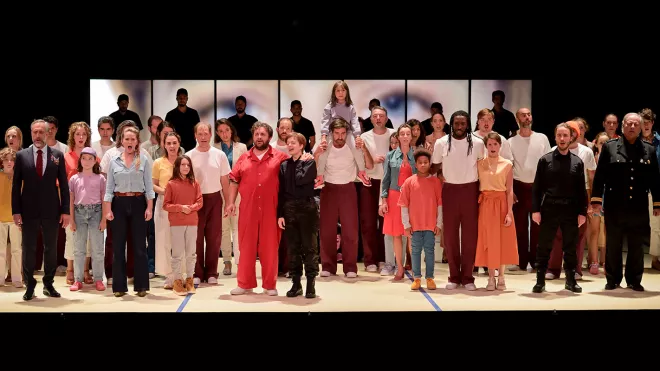 Fidelio, l’unique opéra de Beethoven, ouvre la saison de l’Opéra Comique dans une option hybride confiée à Raphaël Pichon, chef spécialisé dans le répertoire baroque et classique, qui fait appel à des instruments anciens et à une recherche musicologique pointue alors que la mise en scène de Cyril Teste déplace l’action du XVIIIe siècle à nos jours.