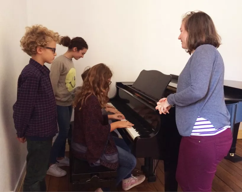 « J’essaie de faire en sorte qu’ils soient tous au piano ensemble, ou surtout qu’ils soient tous occupés à faire quelque chose [sans être] dans l’attente de jouer à leur tour ». « Mon objectif est de leur faire découvrir l’instrument sous toutes ses formes ».