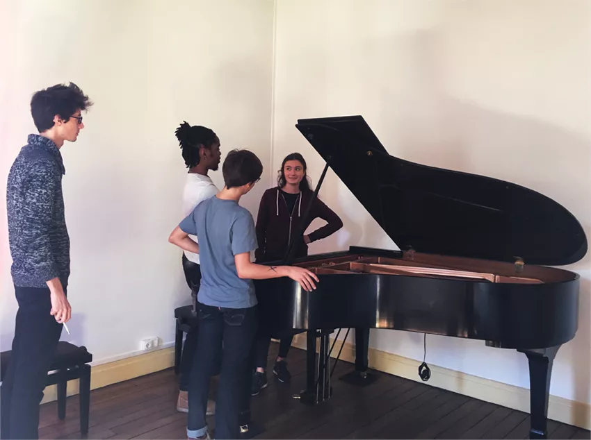 Benjamin Delpouve enseigne le piano aux élèves étant au lycée et à la fac. L’objectif est de transmettre aux jeunes les outils nécessaires à une utilisation efficace et concrète du piano.