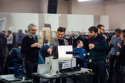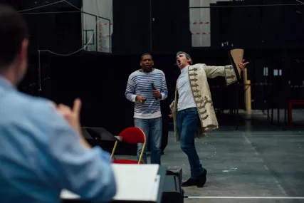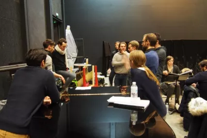 « Le Chantier Fantasio : enquête sur un processus de création » est un projet de recherche associant l’Opéra Comique, l’Ecole des hautes études en sciences sociales (EHESS) et le LabEx CAP, qui réunit sept étudiants-chercheurs, baptisés « Fantasept » par l’équipe de création.