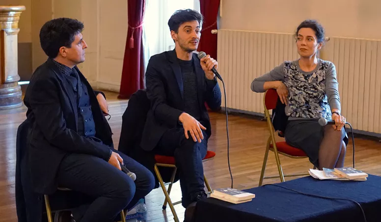 Décidément, Thomas Jolly est partout. Le jeune metteur en scène, infatigable causeur et prosélyte du théâtre, était au foyer Diaghilev du Théâtre du Châtelet samedi 18 février, en compagnie de Sylvain Ledda, spécialiste de Musset, à l’occasion d’une rencontre animée par Agnès Terrier qu’on ne présente plus. De l’assemblée de curieux assis devant eux fusent nombre d’éloges, aussi sincères que les reproches – rares, certes, mais sans lesquels les doutes restent, la conversation n’est que trop molle. Or la passion est le maître mot de ces presque deux heures d’histoire, d’anecdotes et d’analyses, que quelques clichés viennent ici immortaliser.