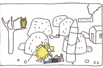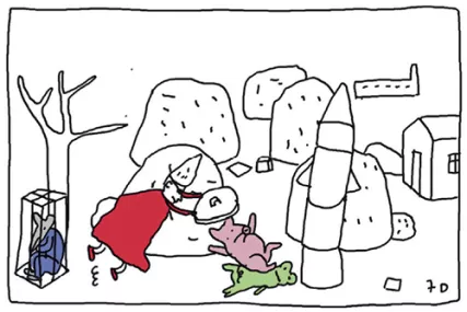 L’heure est venue de délivrer notre malheureux loup ! Pendant ce temps, dans la fusée, que se passe-t-il ? Et bien figurez-vous que Trashella tombe amoureuse de Ferdinand. Quant à Nouille, elle doit renoncer à son amour : Louyaplu s’est dégonflé comme un ballon de baudruche. Mais vous l’aurez compris, tout finit bien ! Trashella et Mercibocou font la paix. Elle l’autorise à construire de nouvelles fusées de l’amour dans le dépotoir.
