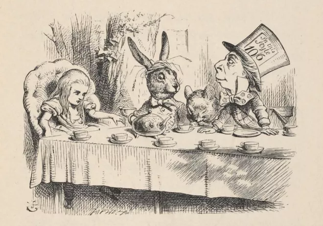 Illustration de John Tenniel, 1869 (Alice au pays des merveilles, par Lewis Carroll). Collection Bnf