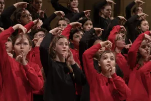 Les élèves de la Maîtrise Populaire de l’Opéra Comique suivent des cours de chansigne, une discipline artistique à part entière qui consiste à représenter visuellement toutes les composantes d'une chanson, afin d'en exprimer le rythme, la poésie, les instruments ; grâce à une adaptation des paroles en langue des signes, au mouvement corporel et à l'expression du visage.