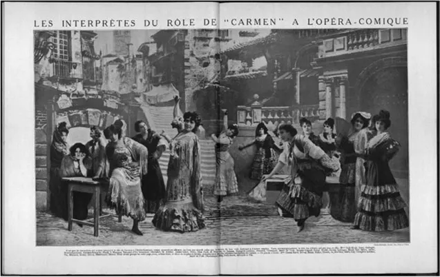 Le 2 janvier 1909, Charles de Gaulle, alors âgé de 18 ans, se rend secrètement à l’Opéra-Comique pour voir le drame que Marie Roze qualifiait de « scabreux », interprété ici par Geneviève Vix, et confie à son cousin Jean dans une lettre : « Notre cousin Louis et moi avons été entendre Carmen à l’Opéra-Comique : il va sans dire que le plus rigoureux silence t’est demandé devant Bonne-Maman. » Quarante ans plus tard, il inaugure l’entrée de Carmen au répertoire de l’Opéra de Paris.