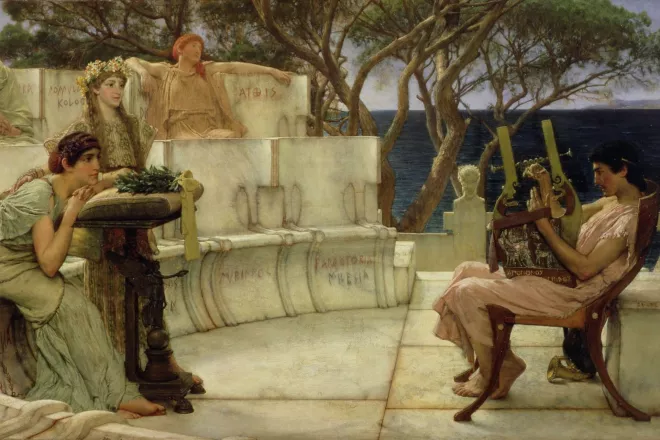Ce sont les neuf filles de Zeus et de Mnémosyne, fille d’Ouranos et de Gaïa. Elles président aux « arts libéraux », c’est-à-dire la poésie épique et lyrique, la comédie et la tragédie, l’astronomie, la musique et la danse, l’histoire et la pantomime. Elles possèdent chacune des attributs spécifiques et sont fréquemment accompagnées par Apollon.