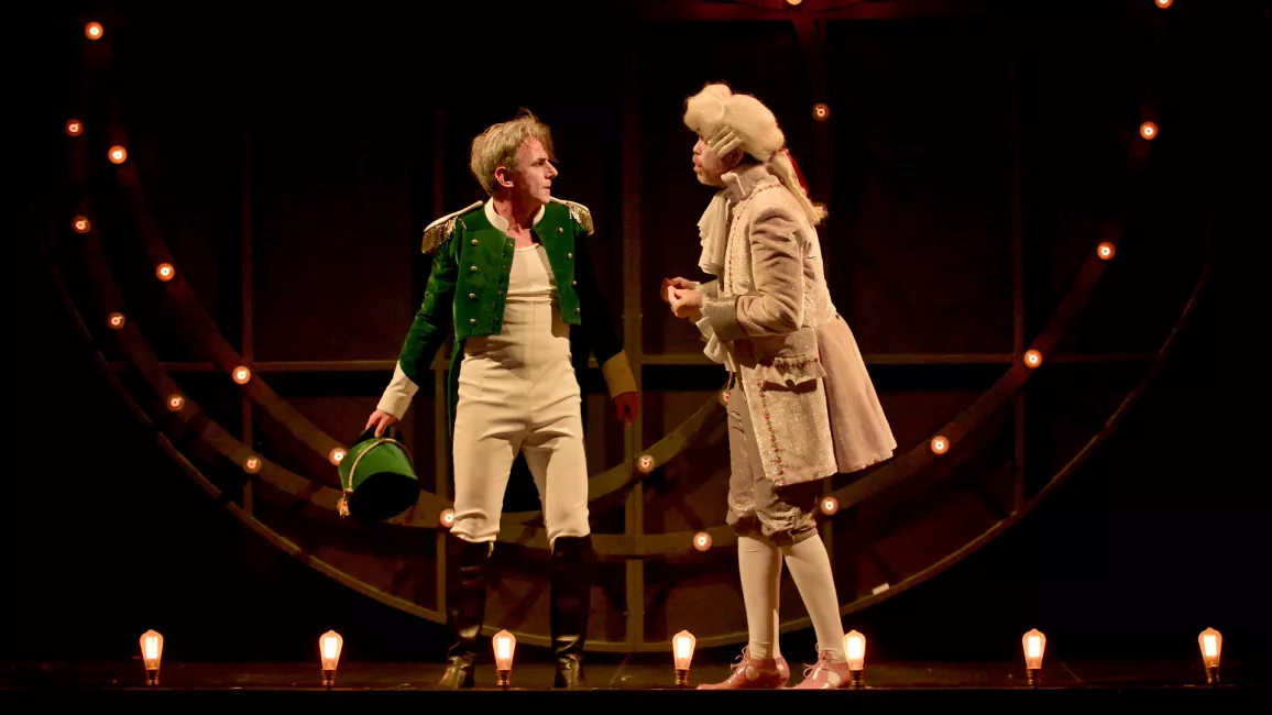 Acte 2 | La princesse Elsbeth se laisse peu à peu conquérir par la fantaisie bienveillante du nouveau bouffon. Fantasio se fait un malin plaisir à déjouer les projets du roi et sème la zizanie... Il veut que la princesse écoute son cœur ! Dans son habit d’aide de camp, en revanche, le prince accumule les gaffes, au grand désarroi du brave Marinoni.