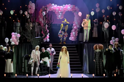 Direction musicale Laurent Campellone • Mise en scène Thomas Jolly • Avec Gaëlle Arquez, Jodie Devos, Franck Leguérinel, Jean-Sébastien Bou, François Rougier, Anna Reinhold, Thomas Dolié, Mathieu Justine, Yoann Le Lan, Virgile Frannais, Bruno Bayeux, Louison Bayeux, Juliette Gauthier • Chœur Ensemble Aedes • Orchestre de chambre de Paris