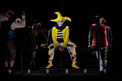 Acte 3 | Fantasio échoue en prison, ce qui l’amuse beaucoup. Il y reçoit la visite de la princesse et se dévoile enfin à elle : sous le costume du bouffon se cache un jeune homme séduisant.