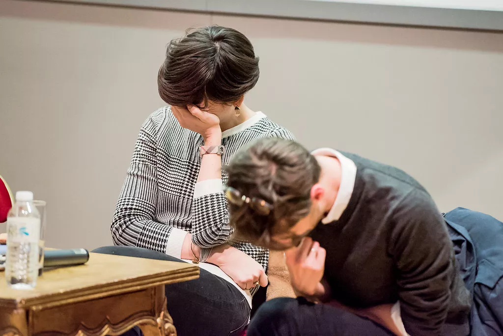 Le lieu d’abord. Fermé comme on sait pour travaux, mais toujours soucieux de favoriser les échanges, l’Opéra Comique s’était mis en quête d’une salle pour abriter l’évènement. Une salle avec une scène, des fauteuils et une régie technique puisqu’il s’agissait bien sûr d’accueillir au mieux le public et de filmer le tout. La fondation Gecina - qui mécène notre institution depuis quelques années - ayant aimablement proposé son auditorium rue des Capucines, il fut décidé d’en faire le lieu de ralliement à cette entreprise pour le moins incongrue et nouvelle : a-t-on vu souvent un metteur en scène décider de découvrir un de ses acteurs au vu et au su de tout le monde ? A-t-on vu une maison d’opéra donner son aval à un tel déballage? A notre connaissance jamais. Il y avait bien eu, un jour, dans cet auditorium, la projection publique d’un documentaire sur les abeilles, mais jamais l’endroit n’avait accueilli véritablement une assistance étrangère à l’entreprise. Autre grande première. Et c’est ainsi que l’on vit débouler - la nuit tombant- abonnés et spécialistes ès lyrique dans ce sous-sol confortable plus habitué à rassembler les salariés ou les cadres dirigeants du groupe immobilier ami qu’à servir d’abri à un premier contact entre passionnés.