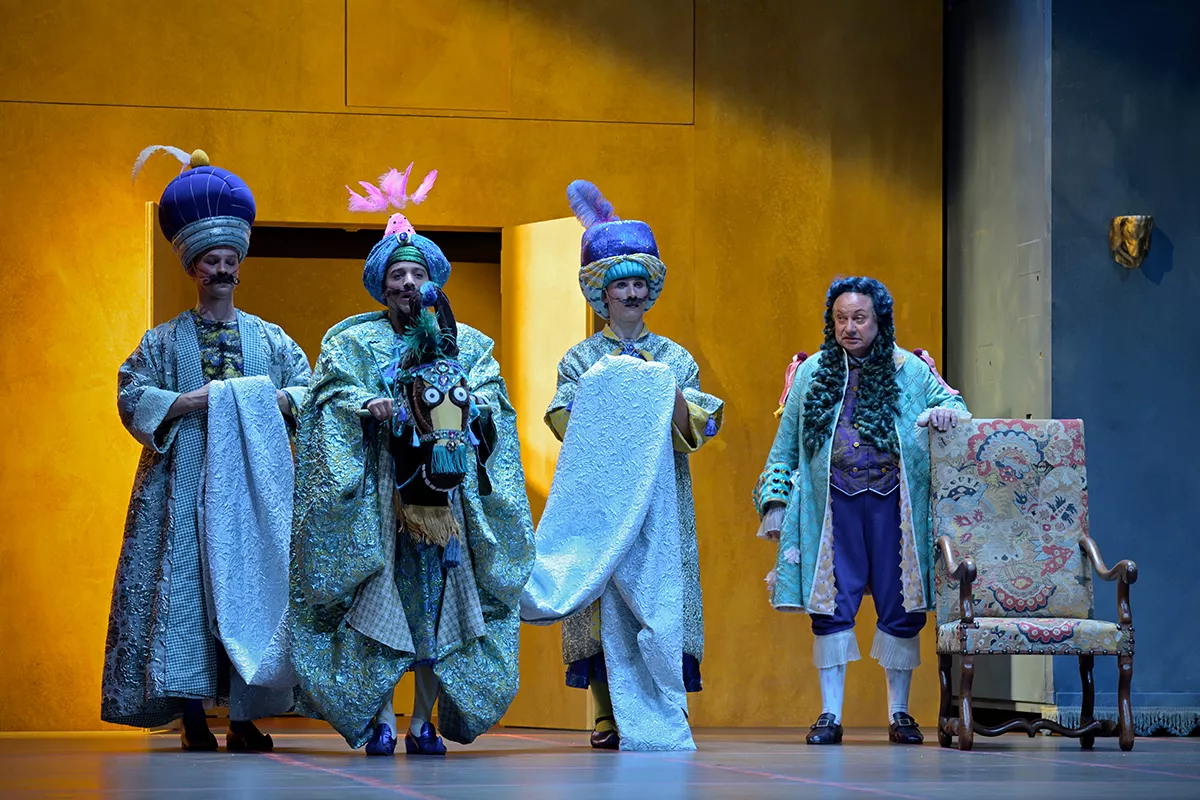 Jérôme Deschamps, qui signe la mise en scène de ce spectacle total, apporte humanité et poésie à ce rêveur de bourgeois dont nous partageons l’émerveillement. Les Musiciens du Louvre font rutiler ces airs et ces danses festives avec une générosité incomparable.