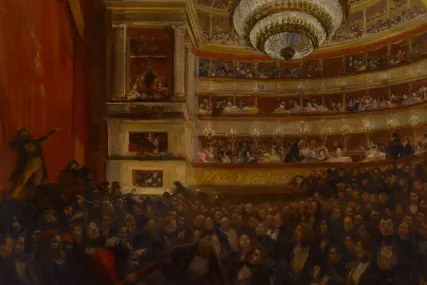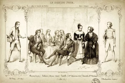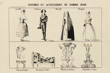 Le titre énigmatique du Domino noir évoquait au XIXe siècle toutes les facettes du genre opéra-comique : le jeu, mais aussi le travestissement par le double sens du mot domino, la possibilité d’une héroïne comme d’un héros, sous le long manteau à capuche qu’était avant tout un domino, le mystère et l’intrigue, le bal et le carnaval… La décennie 1830 était celle du triomphe de la monarchie bourgeoise et de ses valeurs libérales, de l’épanouissement romantique et d’une effervescence culturelle exceptionnelle à Paris.