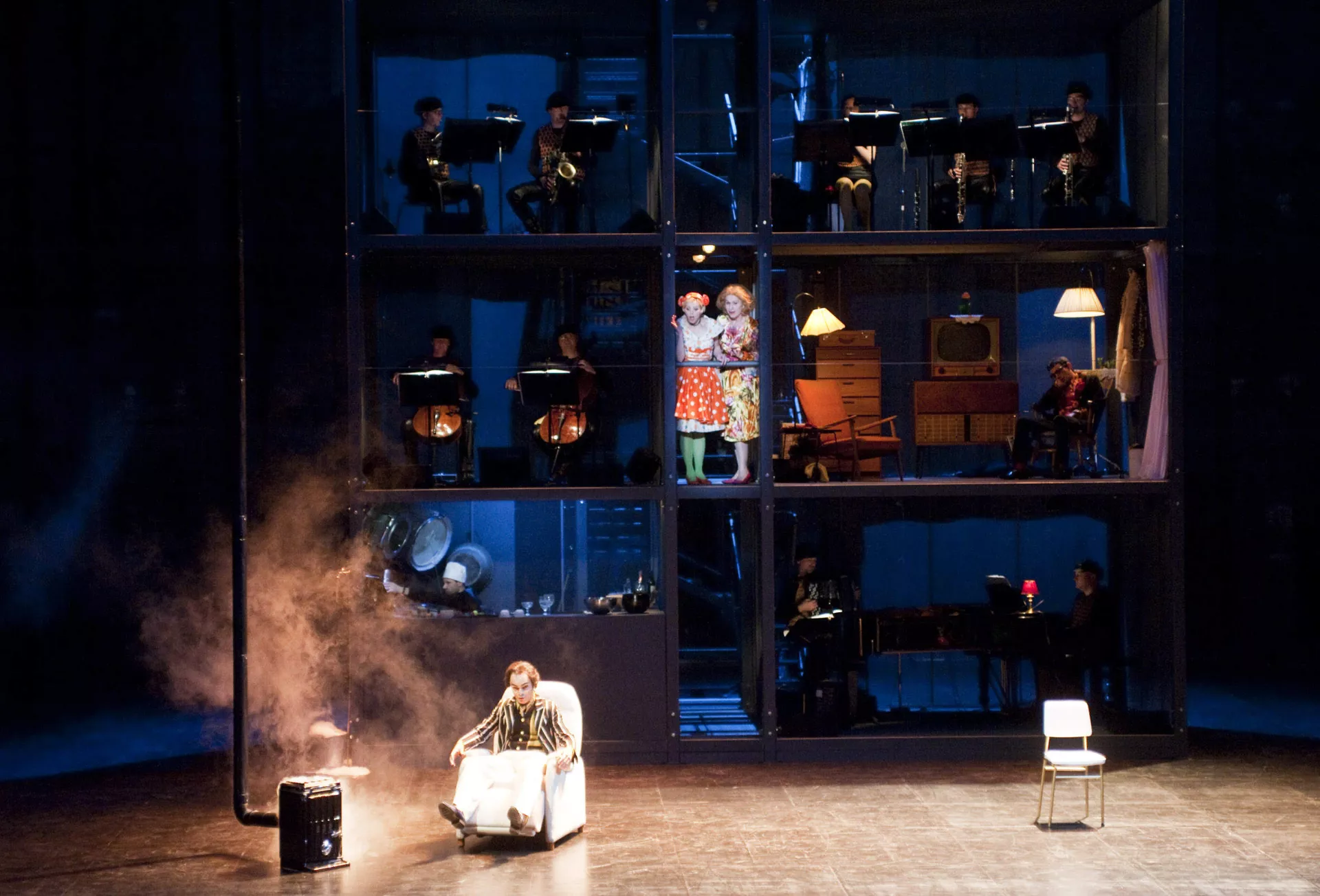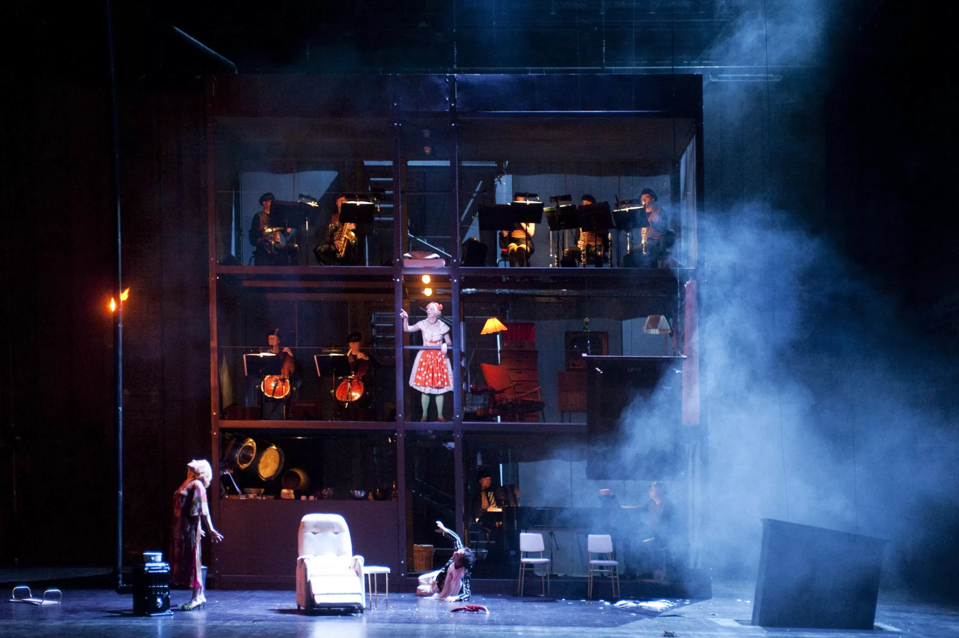 Direction musicale, Jean Deroyer • Mise en scène, Jérôme Deschamps • Avec Lionel Peintre, Jean-Sébastien Bou, Doris Lamprecht, Donatienne Michel-Dansac Klangforum Wien