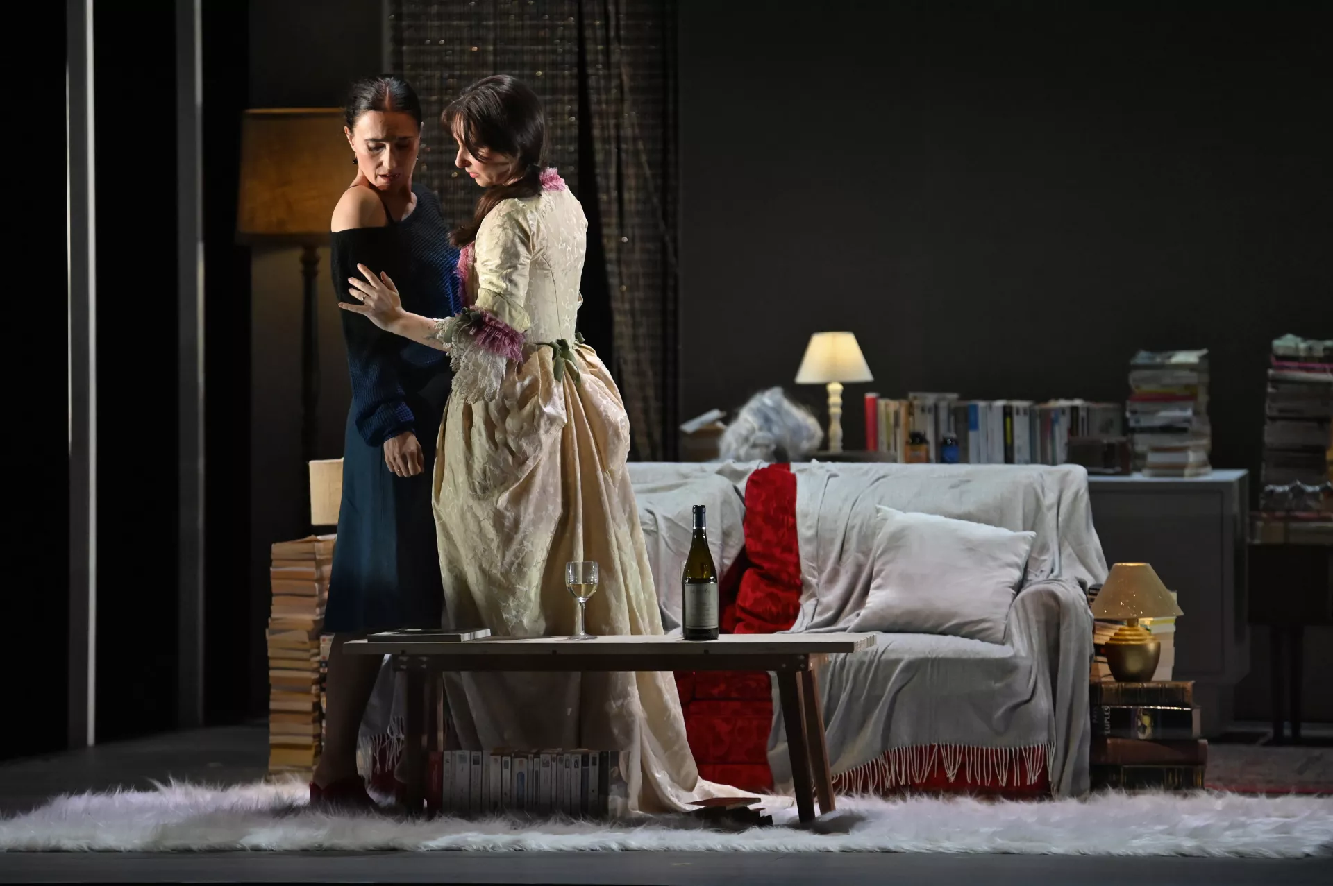 Clara Olivares et Chloé Lechat parient sur la forme opéra pour camper, sur un sujet original, des protagonistes et des questions contemporaines. Fruits d’un processus d’écriture qu’elles ont mené ensemble, spectacle et partition associent trois chanteuses, une comédienne et un orchestre narrateur dans un projet captivant. Avec elles, l’opéra entend continuer à saisir toutes les nuances de la vie intime.