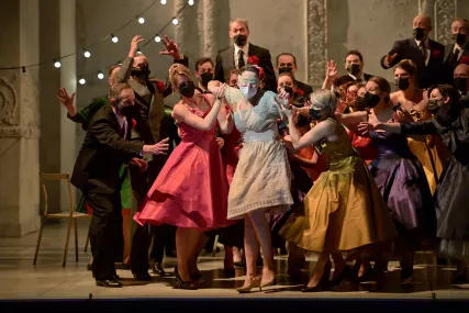 Éric Ruf installe Gounod dans le décor conçu pour Shakespeare à la Comédie-Française – défi dramaturgique et écologique. Et Laurent Campellone ressuscite ce chef-d’œuvre, à la tête de l’orchestre de l’Opéra de Rouen, d'accentus et d’une distribution de rêve, menée par Julie Fuchs et Jean-François Borras.